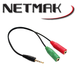 adaptador stereo 3.5 m a 2 stereo h netmak (nm-c92)