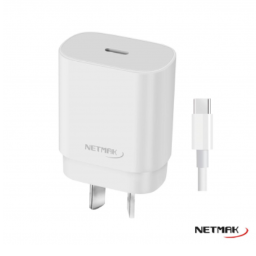 cargador usb-c pd 30w con cable tipo-c netmak (nm-cp2)