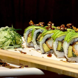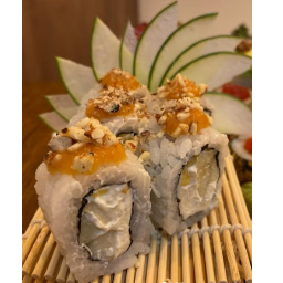 Pepino, phila y fruta de estación, coronado c/ salsa anguila y maní