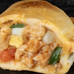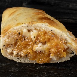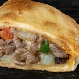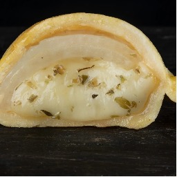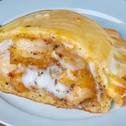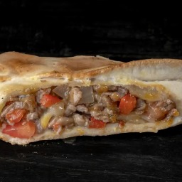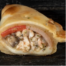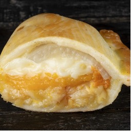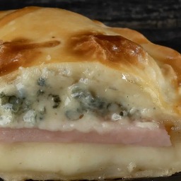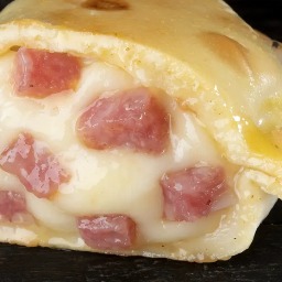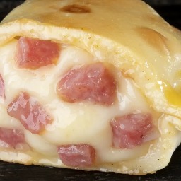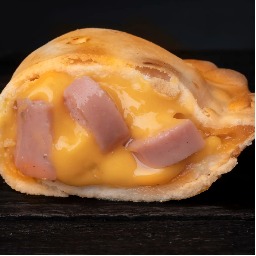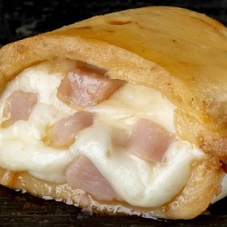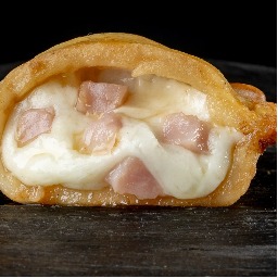 Masa elaborada con 3 tipos de quesos (sardo estacionado, provolone y muzzarella), rellena de jamón cocido y queso muzzarella