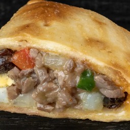 Masa vegana, soja texturizada y sazonada con nuestro mix de especias tradicionales, cebolla, verdeo y pimiento salteado complementado con cubitos de papa