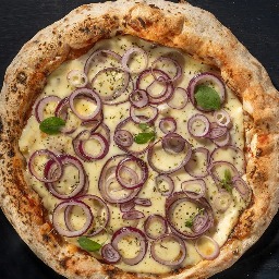 Mix de cebollas, muzzarella, aceite de oliva/hierbas aromáticas.