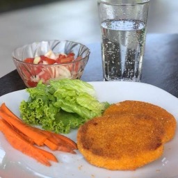 hamburguesa de merluza con choclo, arveja y zanahoria, sin tacc