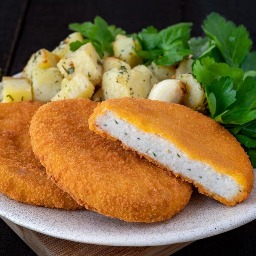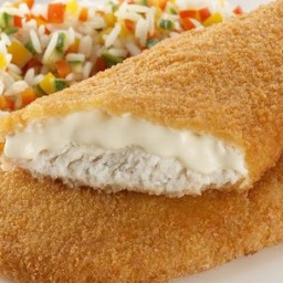 milanesas de merluza empanadas, rellenas con queso