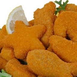 Formitas de merluza con forma de animalitos de mar, rebozado en pan rallado - precio x 100g
